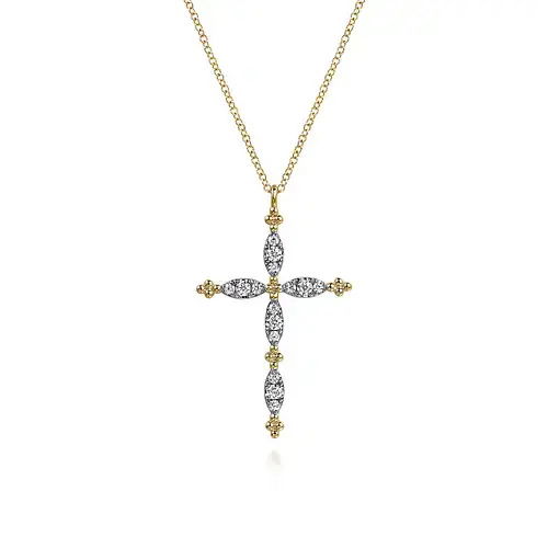 14K YG 15BR DIA'S 0.34CTW BUJUKAN CROSS PEND/NECKLACE- 17.5" -S2069401