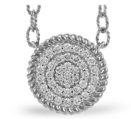 14KWG 37 ROUND DIAMONDS 0.32CT ROPE TRIM CIRCLE STATION 18" PAPERCLIP CHAIN NECKLACE