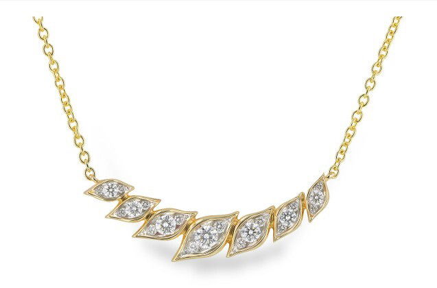 14KYG 21 ROUND DIAMONDS 0.36CT "LEAFY" BAR NECKLACE - 18"