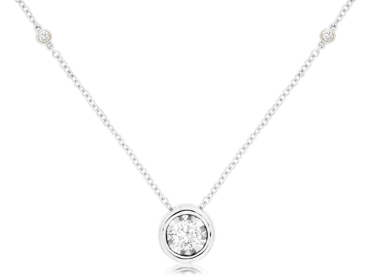 - 14KWG 1 ILLUSION SET DIA SLIDE PEND W/ 4 BEZEL SET DIA'S ON 18" CABLE CHAIN