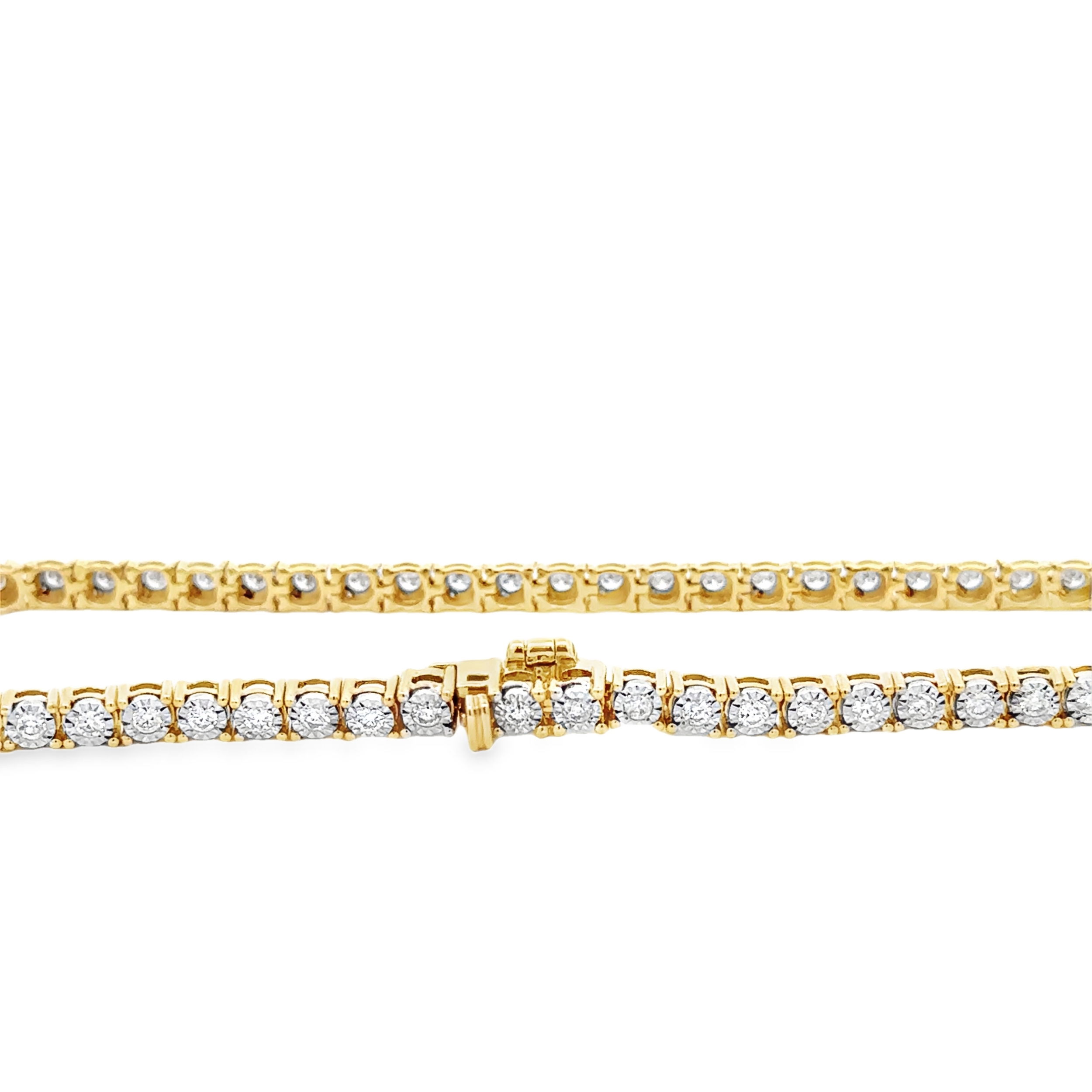 - 14KYG 7" 58 ROUND DIAMONDS 1.00CT MIRROR PLATE ILLUSION TENNIS BRACELET