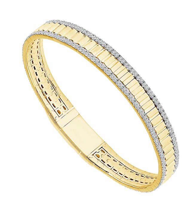 - 14KYG 222 ROUND DIAMONDS 1.00CT WIDE 6.75" DIAMOND CUT FLEXI-BANGLE BRACELET