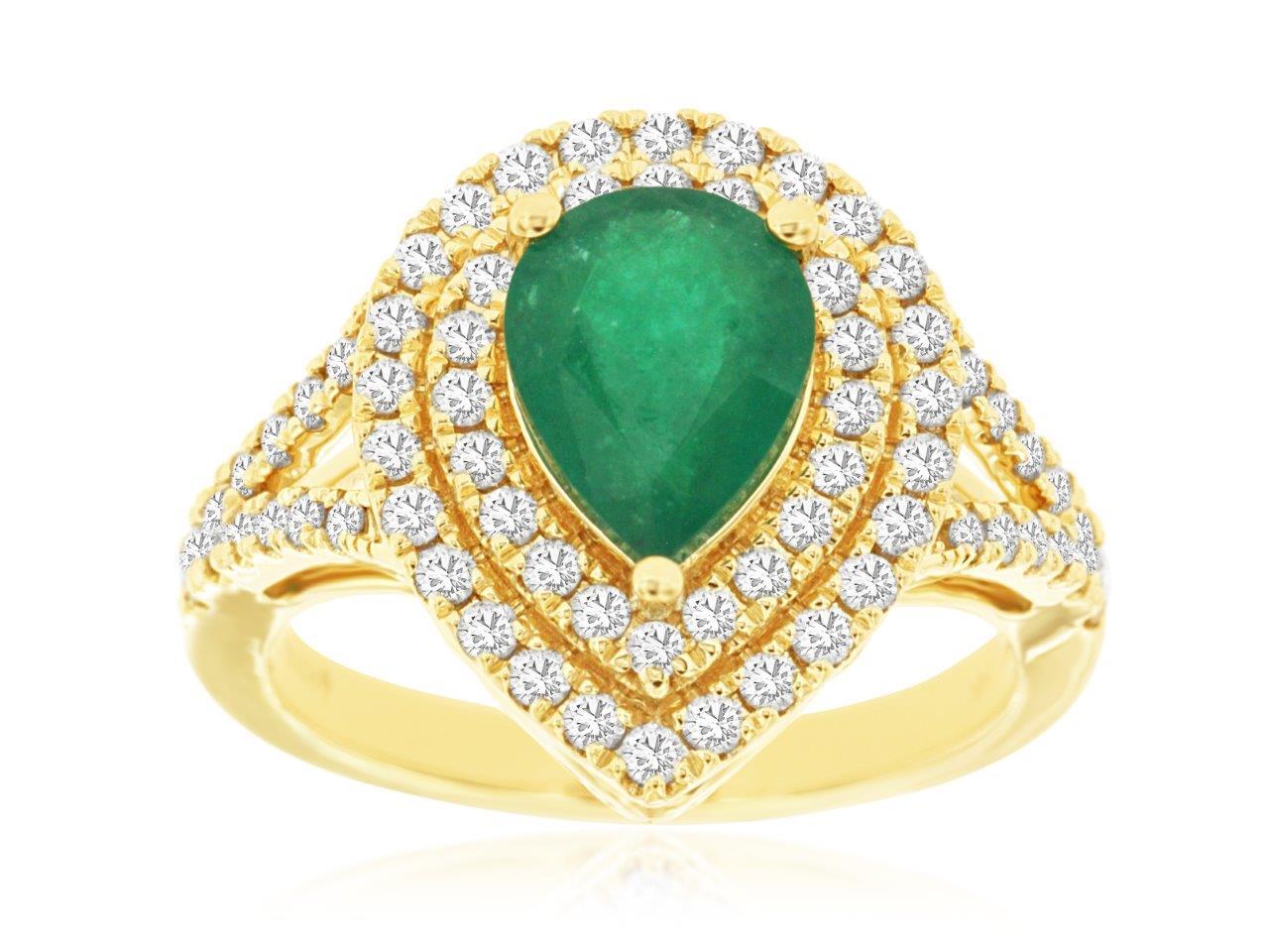14KYG 1.60CT PS EMD & 66 DIA'S 0.75CTW SPLIT SHANK DOUBLE HALO FASHION RING