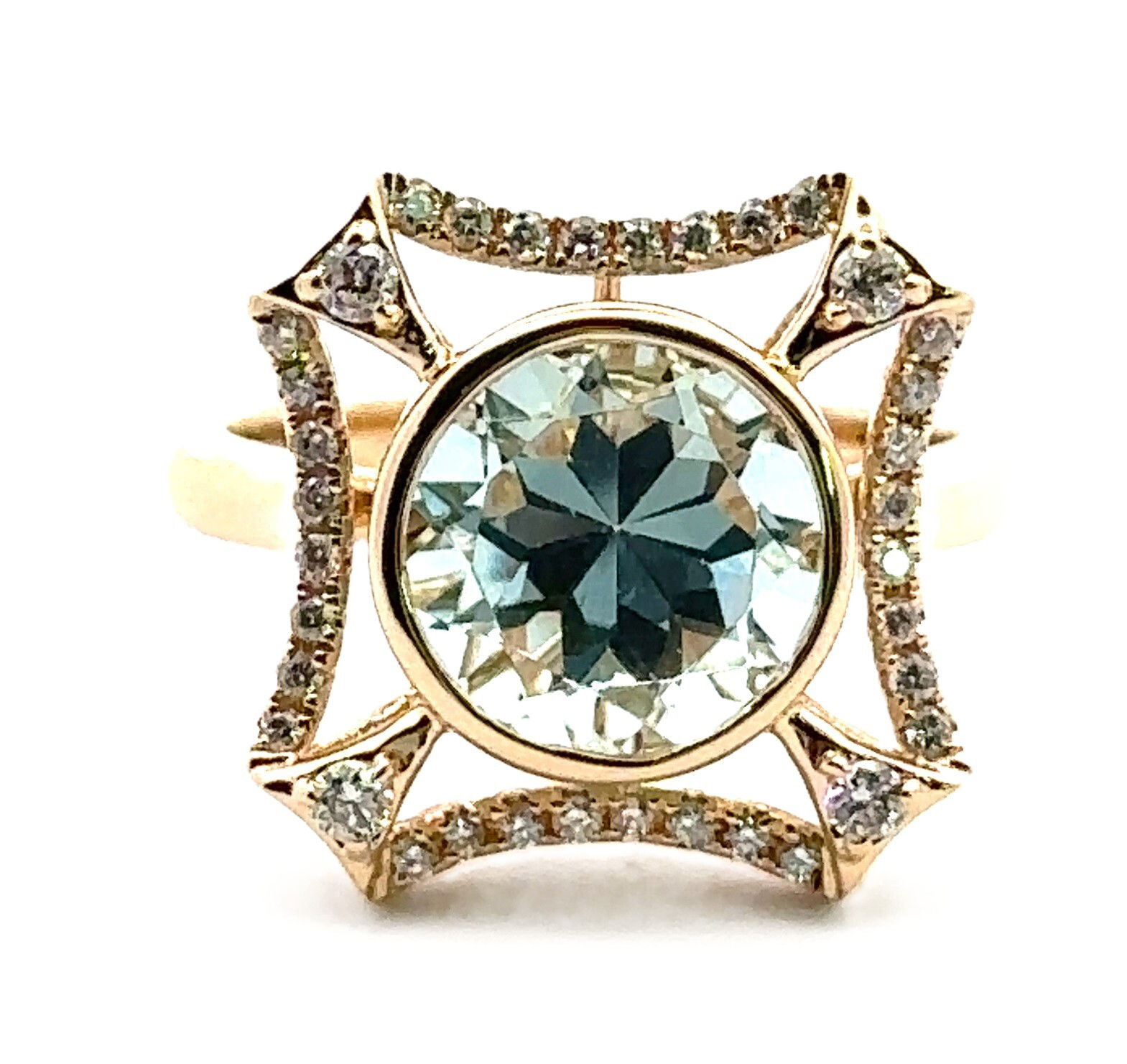 - 18KY 3.19CT ROUND AQUAMARINE & 36 ROUND DIAMONDS 0.29CT CONTEMPORARY HALO RING