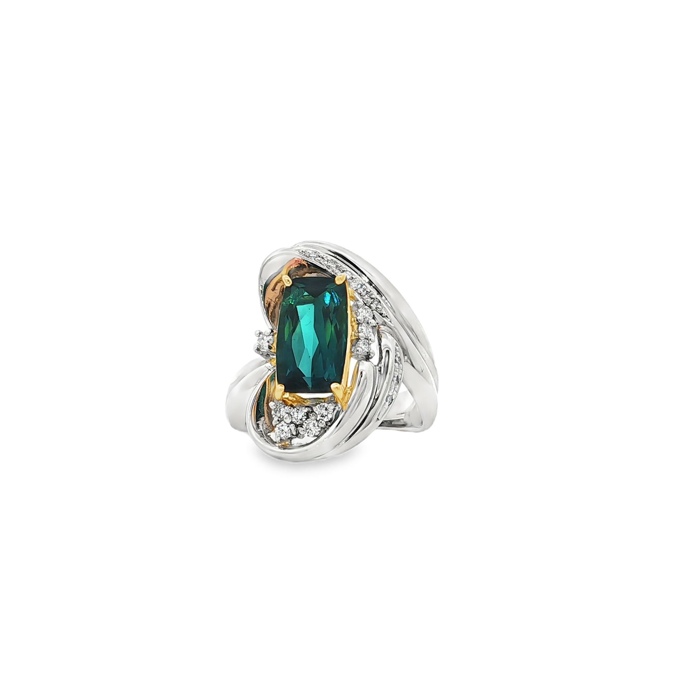 18KW 2.87 CT TOURMALINE & .23CTTW RB DIA RING SZ 6.5