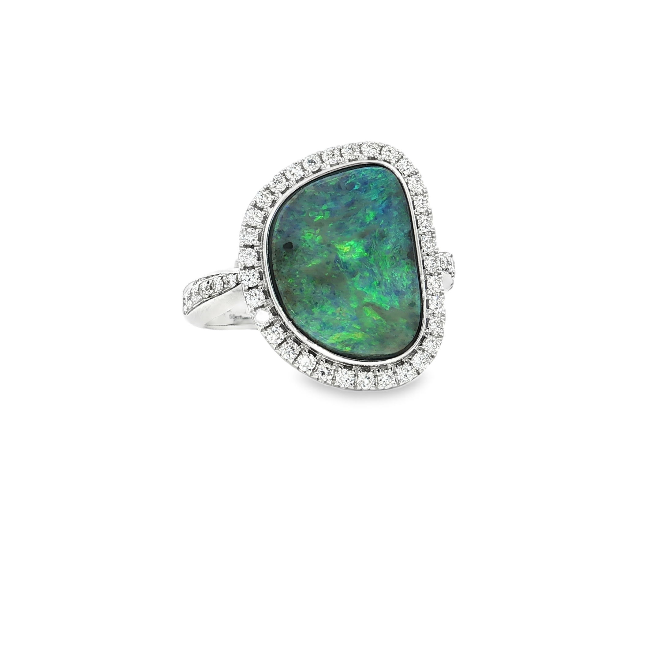 18KW 4.55CT BLK OPAL & .38CTTW RB DIA RING SZ 7