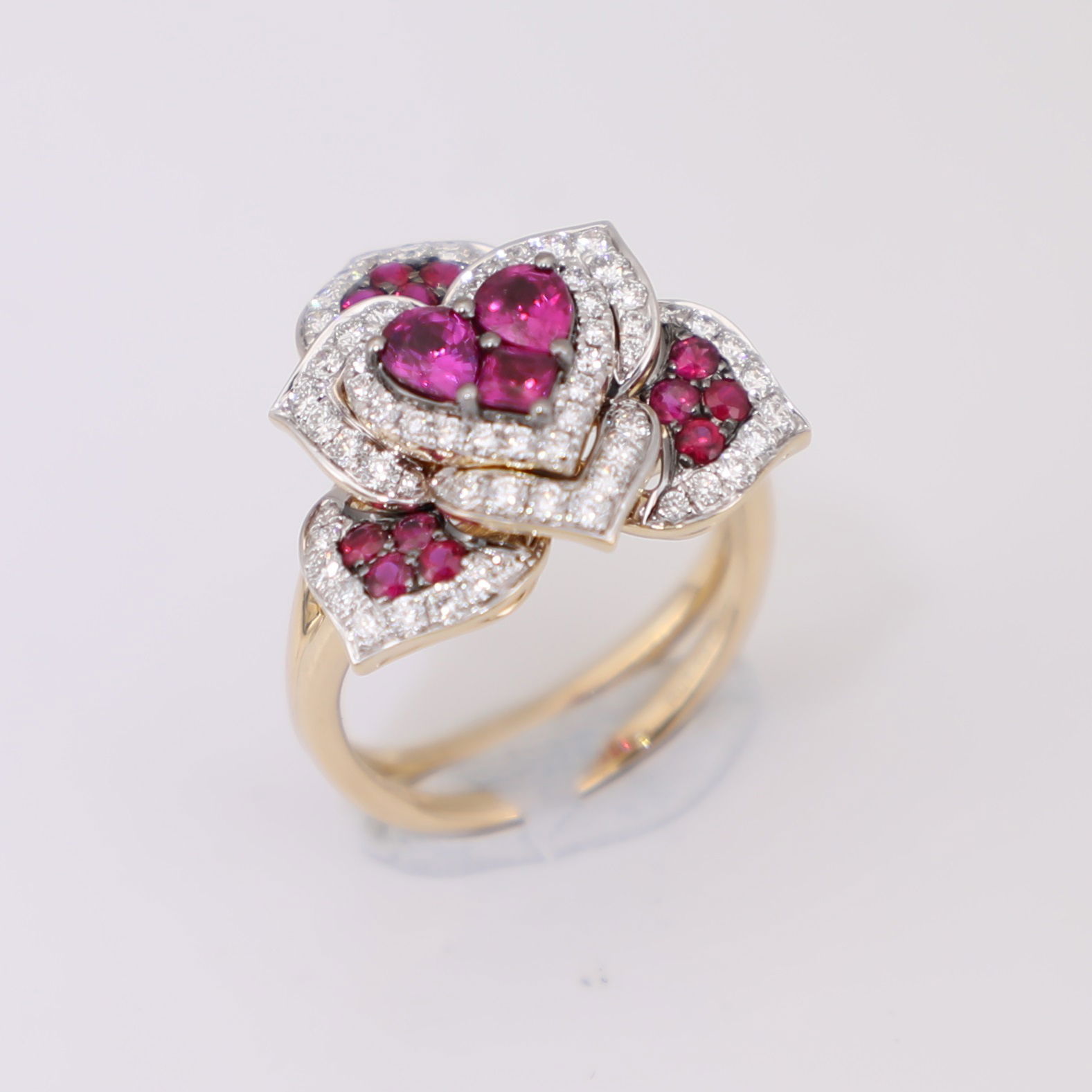 14KYW 1.13CTS PEAR-PRINC-RD RUBY & .72CTS RB DIA RING SZ 6.5