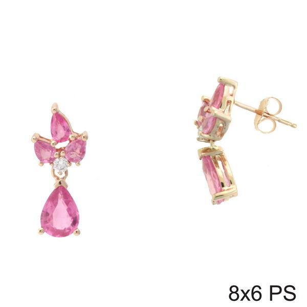 14KR PEAR SHAPED PINK SAPPHIRE @ 3.50CTTW & RD DIA @ .10CTTW DROP EARRINGS