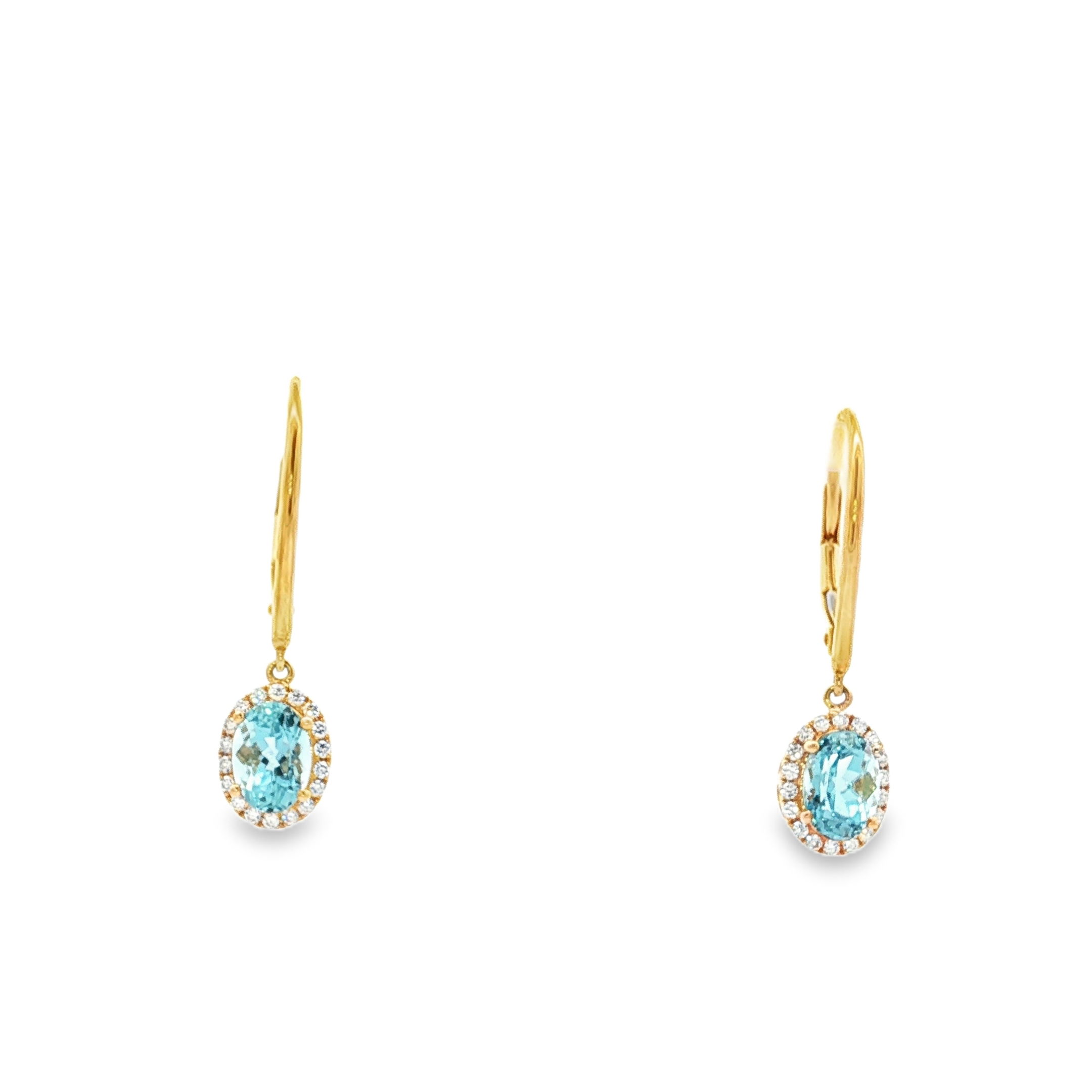 18KY 1.70CTTW AQUA & .21CTTW RB DIA LB EARRINGS