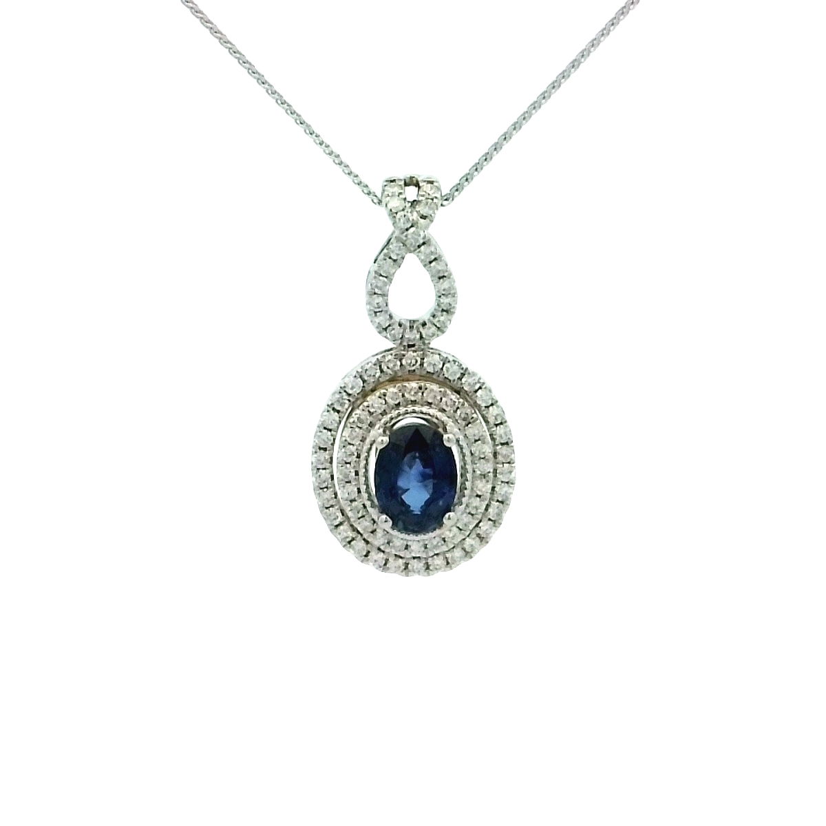 - 14KWG 1.30CT OVL SAPH & 73 DIA'S 0.50CTW DOUBLE HALO FASHION PEND/NECKLACE- 17"