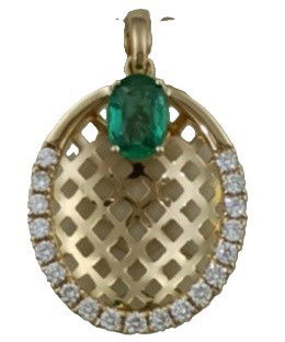 - 18KY 0.45CT OVAL EMERALD & 19 ROUND DIAMONDS 0.25CT "BASKET" PENDANT W/18" CABLE CHAIN
