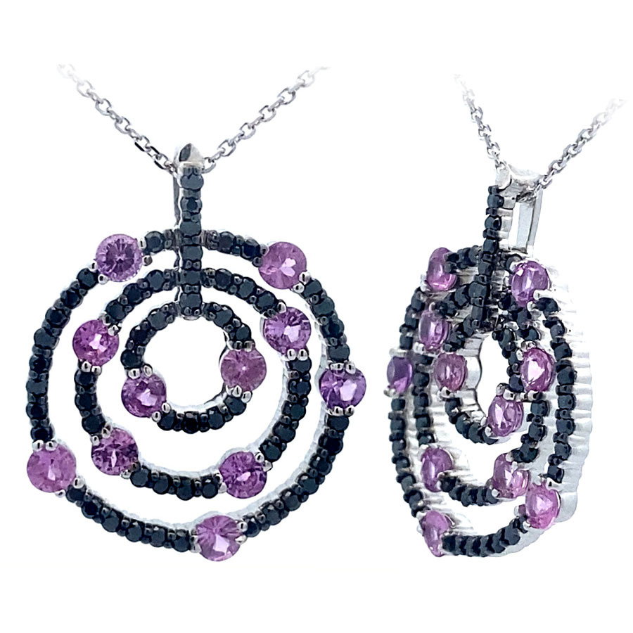 - 14KW BLACK DIAMOND @ .75CTTW & PINK SAPPHIRE @ 1.65CTTW PENDANT