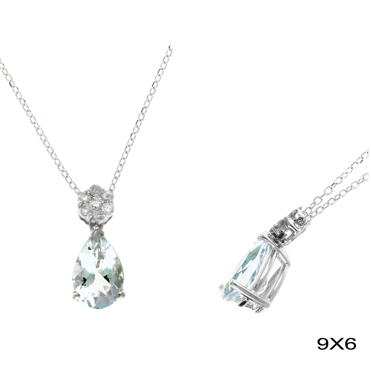 - 14KW 1.30CT PS STAR CUT AQUA & .06CTTW RB DIA PENDANT W/16" CHAIN