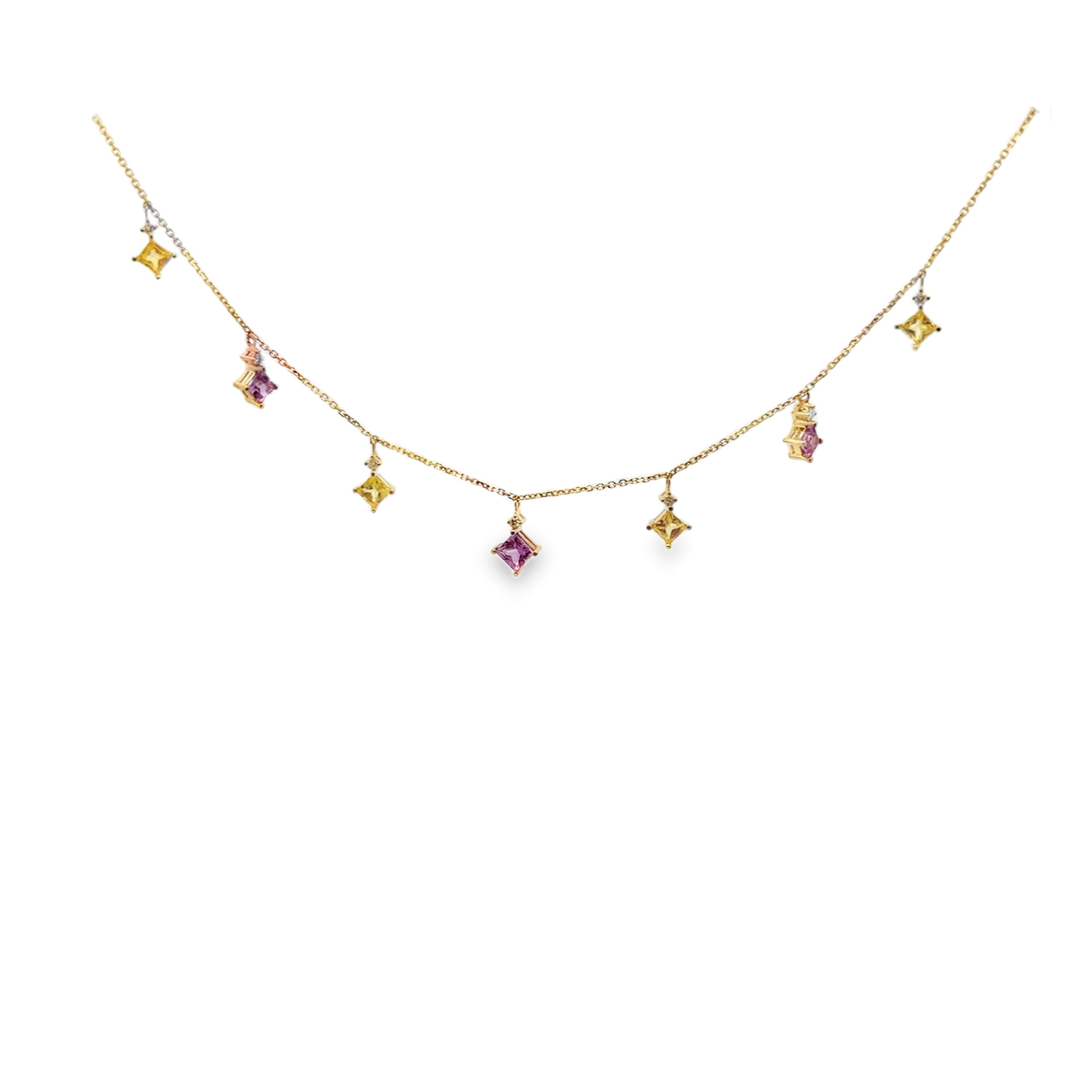 14K YG 7 PINK & YELLOW 2.40CT, 7 BR DIA @ 0.14CT NECKLACE