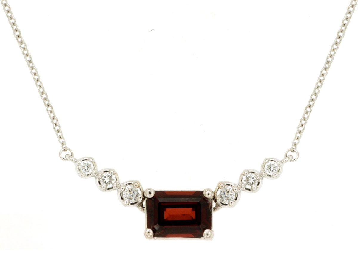 - 14KWG 1.20CT EMD CUT GARN & 6 RD DIA'S 0.14CTW FASHION BAR NECKLACE- 16"