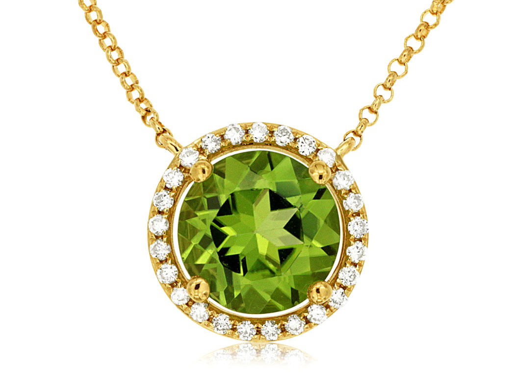 - 14KYG 2.00CT PER & 25 DIA'S 0.14CTW HALO FASHION STATIONARY PEND W/ CHAIN