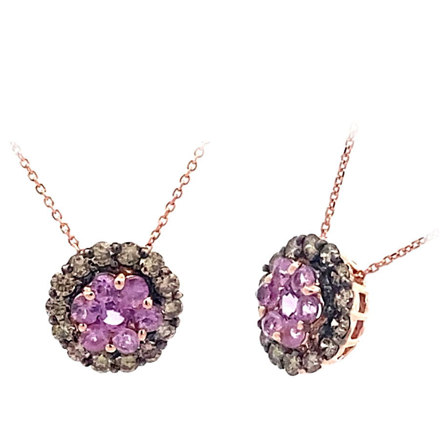 - 14KR PINK SAPPHIRE @ .45CTTW & RD CHAM DIA @ .35CTTW NECKLACE ON 16" CHAIN