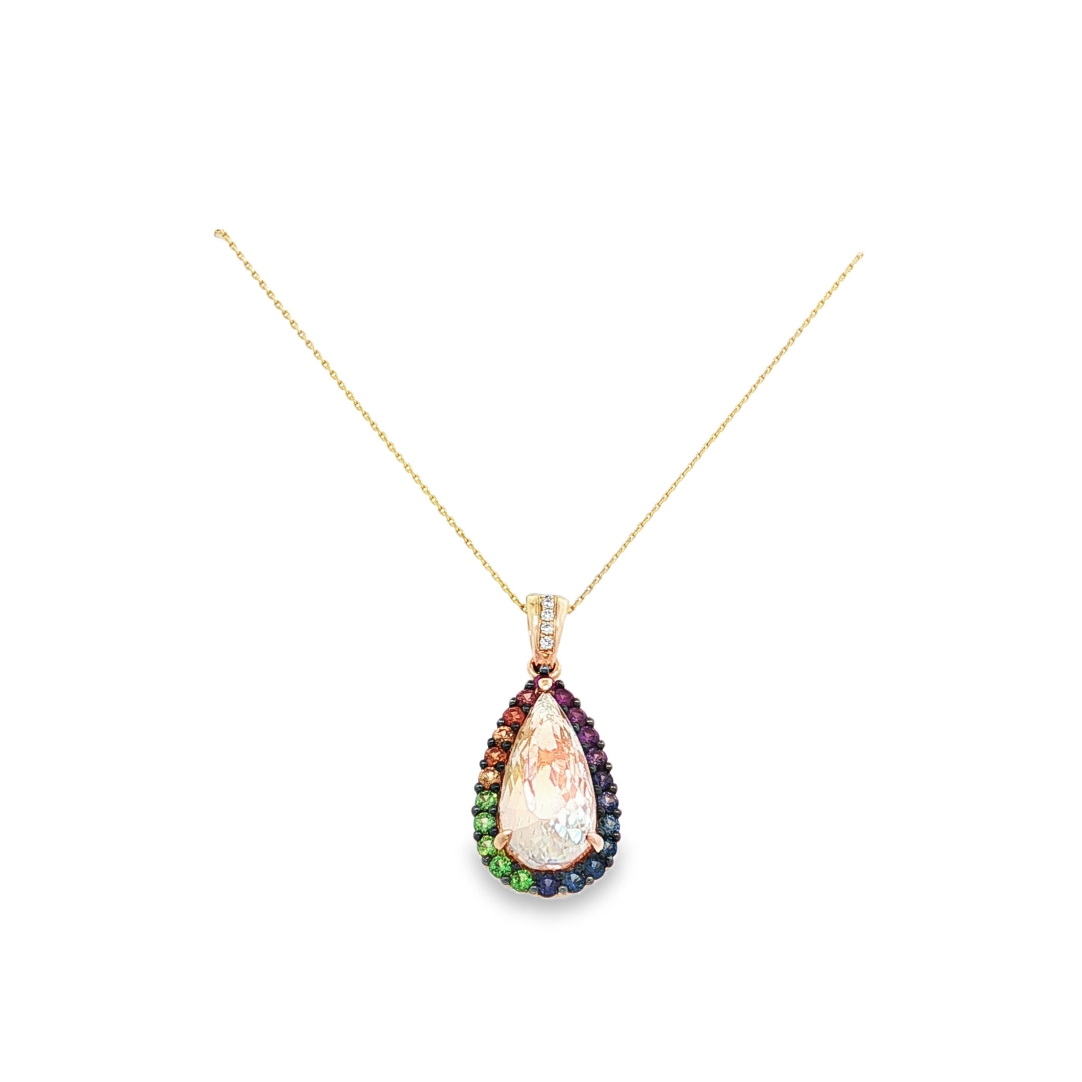 14KY 4.87CT RAINBOW MOONSTONE & .02CTTW RB DIA 18" NECKLACE