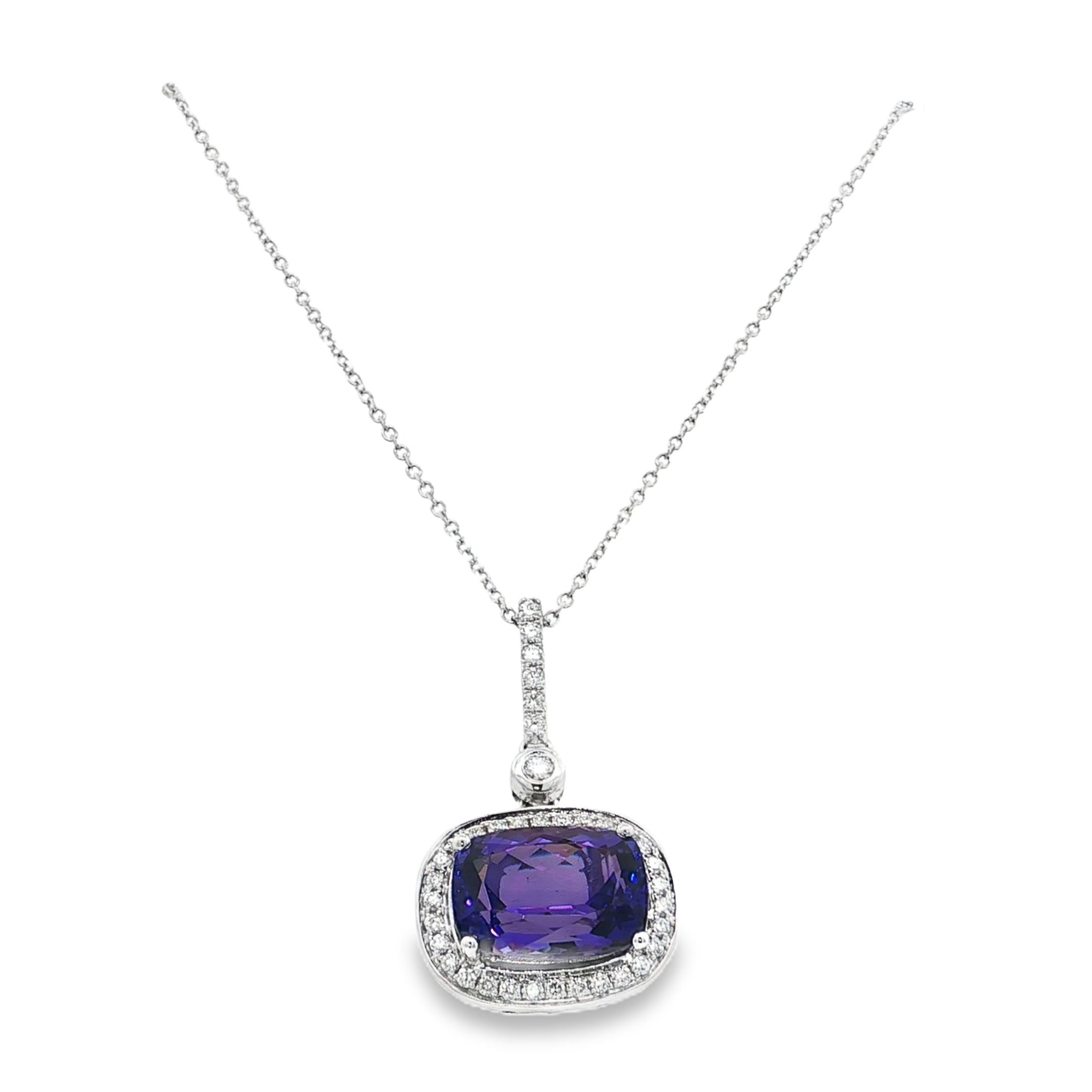 - PLATINUM 5.40CT EMERALD CUT TANZANITE & 22 ROUND DIAMONDS 0.44CT HALO STATION 18" NECKLACE