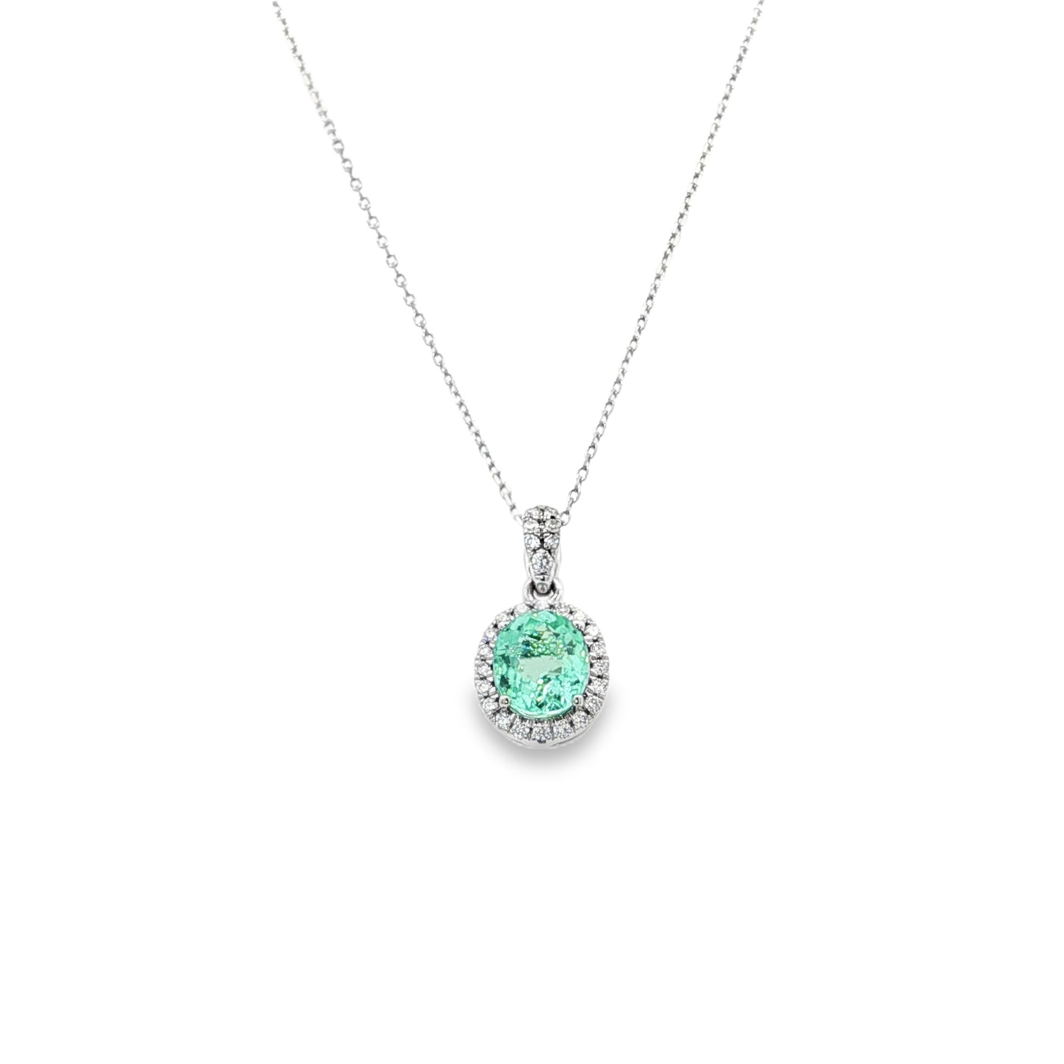 PLAT .78CT PARAIBA & .78CTTW RB DIA 18" NECKLACE