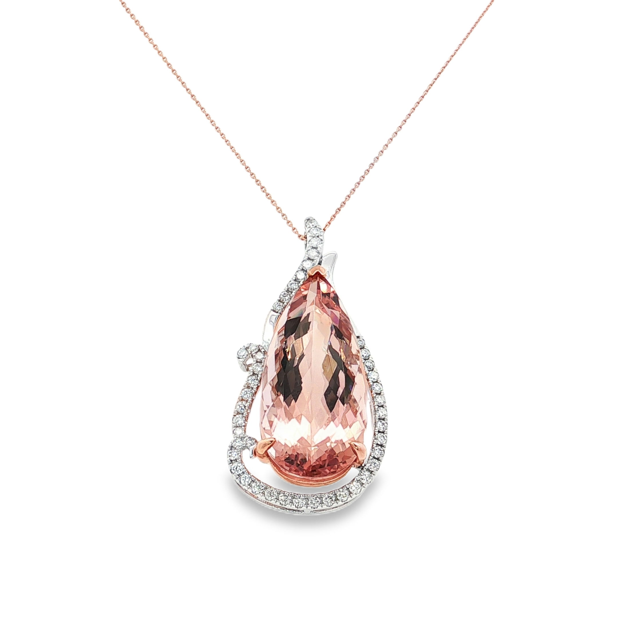 14KR 14.14CT MORGANITE & .43CTTW RB DIA 18" NECKLACE