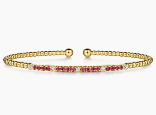 14KYG 16 RUBY .39CT & 5 BR DIA .09CT BUJUKAN BANGLE BRACELET