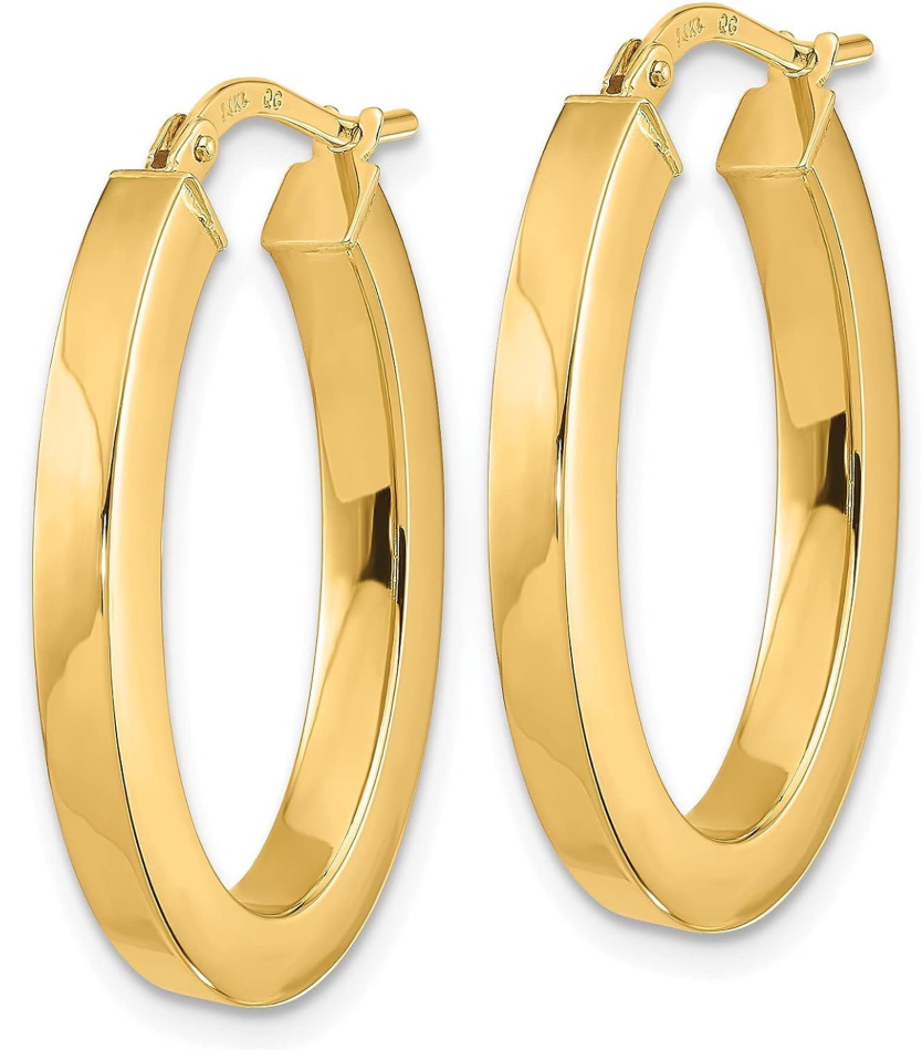 14KYG POLISHED 3x20x30MM SQUARE TUBE OVAL HOOP EARRINGS