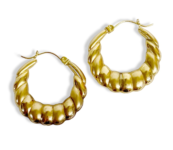 14KYG POLISHED GRADUATED SHRIMP DESIGN HOOP EARRINGS