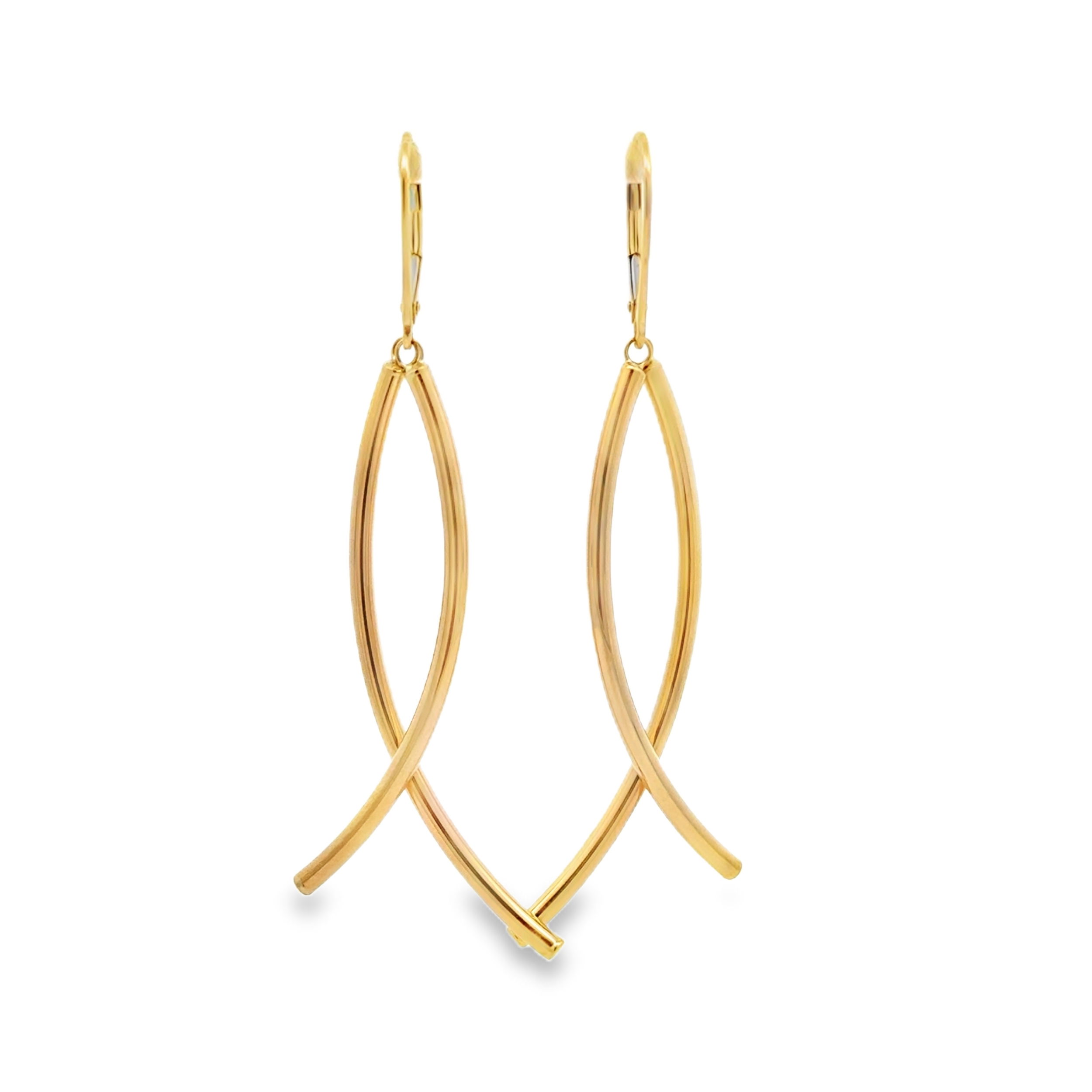 14KY POLISHED CURVED GRADUATED BYPASS (FISH) TUBE STICK EARRINGS