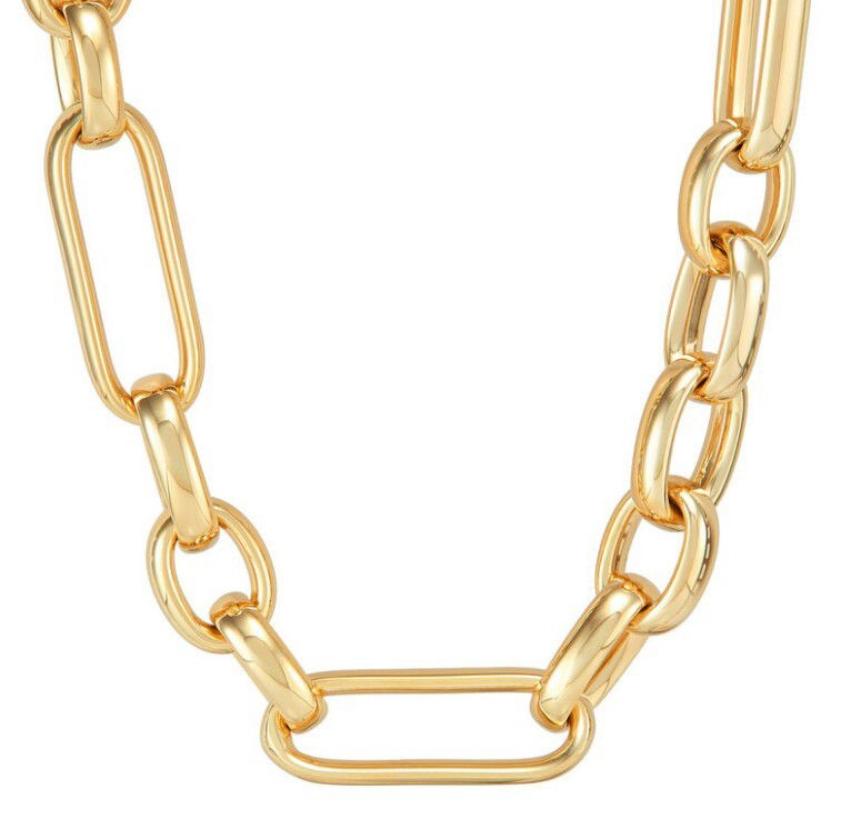 14KYG HOLLOW POLISHED ALTERNATING SHORT & LONG OVAL LINKS NECKLACE- 20"