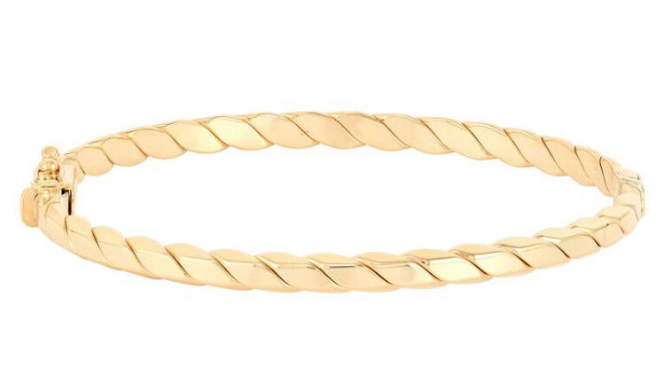 14KY POL HOLLLOW OVAL TWIST DSGN HINGE BANGLE