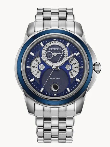 - CITIZEN STAINLESS STEEL CALENDRIER ECO-DRIVE W/BLUE DIAL