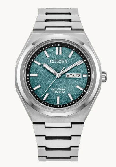 CITIZEN ECO-DRIVE SUPER TITANIUM WATCH W/GREEN DIAL -- DAY/DATE