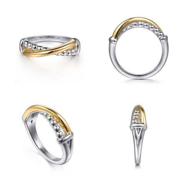 .925 STERLING SILVER & 14KYG BUJUKAN CRISS CROSS STACKABLE RING -- SIZE 6.5