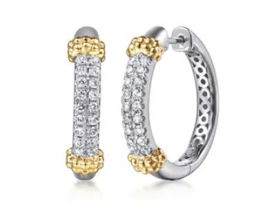 - .925 STERLING SILVER & 14KYG 20MM 0.43CTW WHITE SAPPHIRE BUJUKAN HOOP EARRINGS