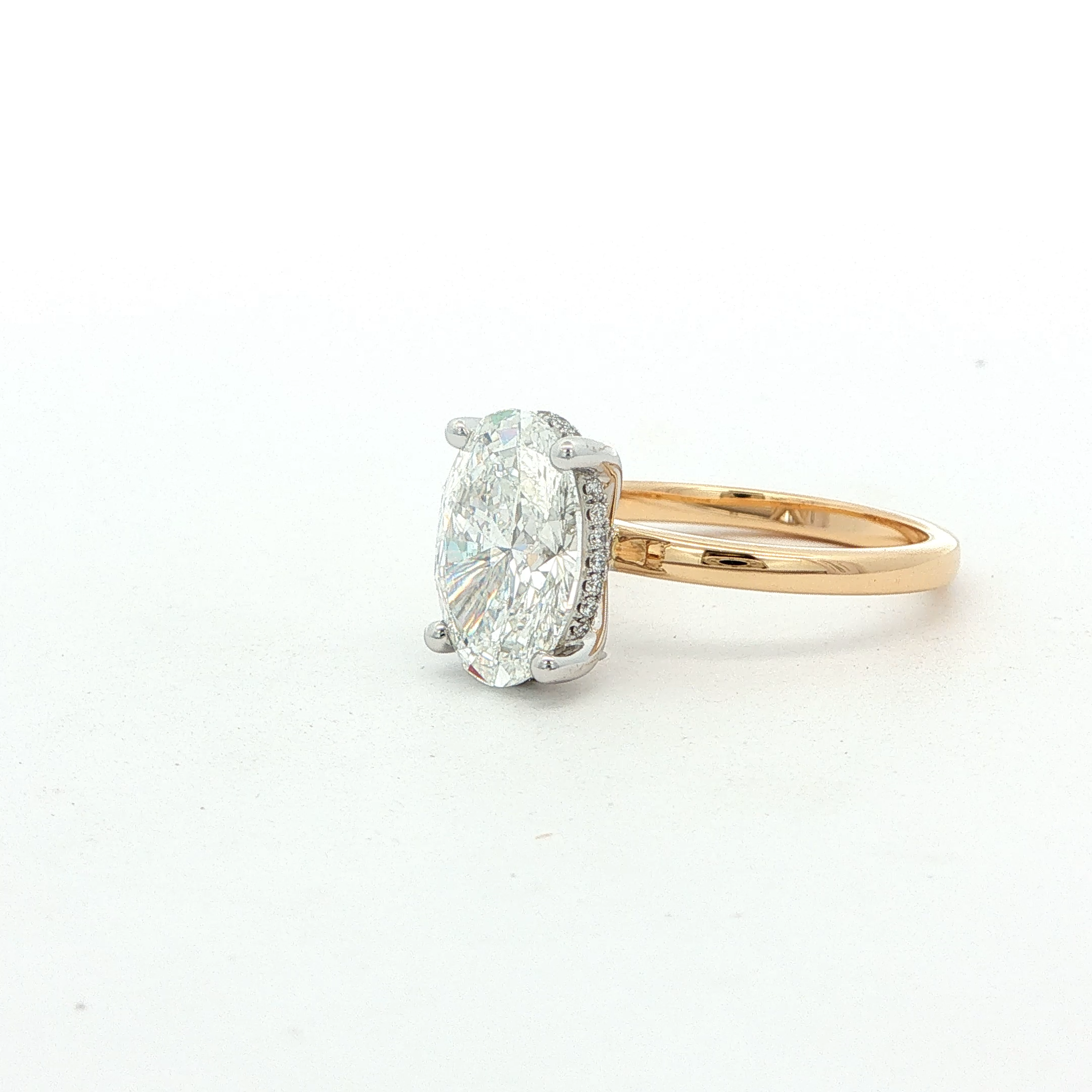- 14KYG/WG 2.79CT E/VS1 IGI#72655975 LAB GROWN OVAL DIAMOND 0.10CTW HIDDEN HALO SOLITAIRE ENGAGEMENT RING