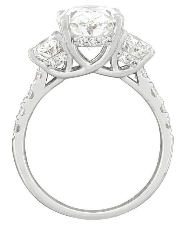 14KWG 3.55CT E/VS1 IGI#LG640462922 OVAL LAB GROWN DIAMOND - 2 SIDE LG OVALS (IGI) 1.50CTTW D/VVS2 & RB LG DIA'S 1.92CTW 3-STONE ENGAGEMENT/ANNIVERSARY RING | Thacker Jewelry
