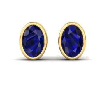 10KY 6X4 OVAL LAB CREATED BLUE SAPPHIRE BEZEL SET STUD EARRINGS