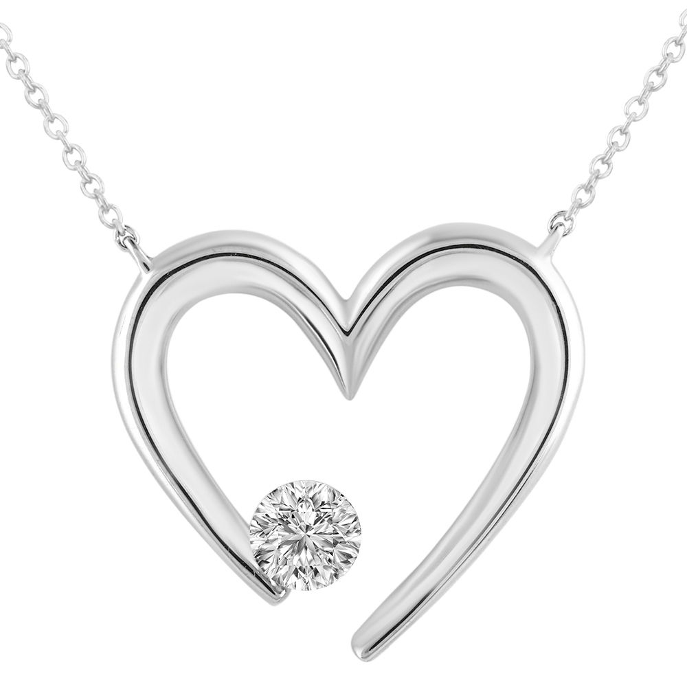 14KWG 0.19CT ROUND LAB GROWN DIAMOND BARE BRILLIANCE POLISHED HEART 18" NECKLACE